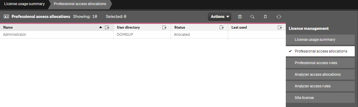 Verificar inicialmente no QMC se o usuário possui uma licença professional alocada: - Acesse o QMC > License management > Professional access allocations